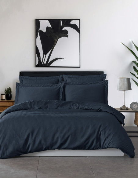 Parure housse de couette rayée satin + 2 taies 50x70 cm VERSALUXE