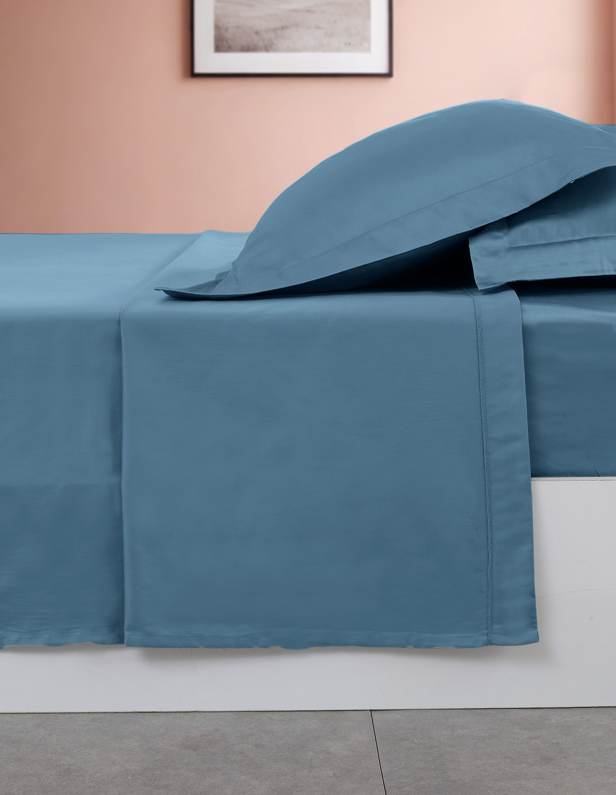 Cette parure est composée d'un drap plat et de 2 taies d'oreillers carrées 65x65 cm,  et elle se définit comme un élément incontournable pour votre lit et confort. Le traitement Easy Care permet d'avoir un tissu souple nécessitant peu de repassage.