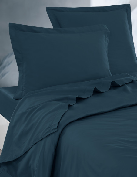 Cette parure est composée d'un drap plat et de 2 taies d'oreillers carrées 65x65 cm,  et elle se définit comme un élément incontournable pour votre lit et confort. Le traitement Easy Care permet d'avoir un tissu souple nécessitant peu de repassage.