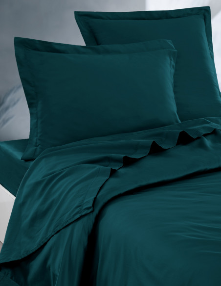 Cette parure est composée d'un drap plat et de 2 taies d'oreillers carrées 65x65 cm,  et elle se définit comme un élément incontournable pour votre lit et confort. Le traitement Easy Care permet d'avoir un tissu souple nécessitant peu de repassage.