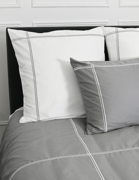 Découvrez notre parure de lit avec taies rectangles Pavillon Royal en satin de coton luxueux, sublimée par des élégantes lignes brodées sur la housse de couette et les taies d'oreiller, pour une touche de raffinement et de douceur inégalée.
