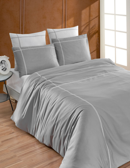 La housse de couette est fermée avec des boutons (sans rabat), en dimensions 200x200 cm, 240x220 cm et 260 x240 cm et les taies sont en 50x70 cm.