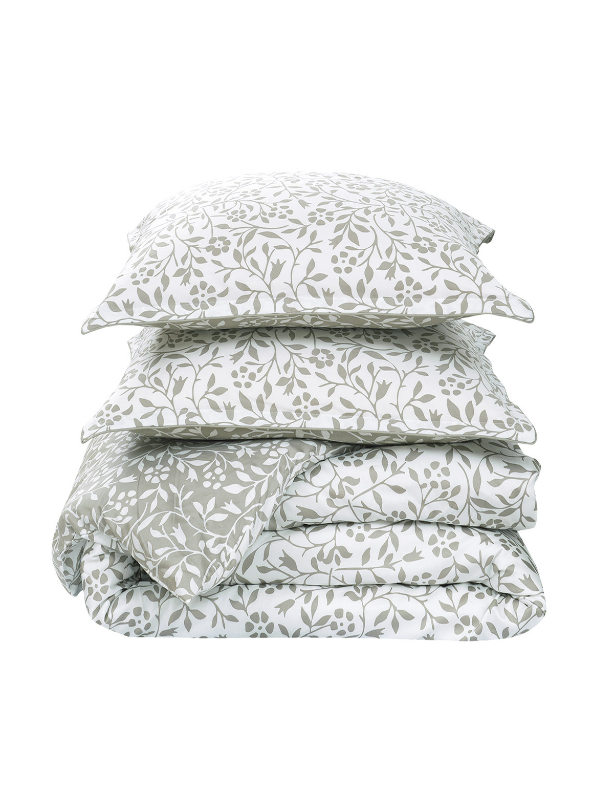 La parure est composée d'une housse de couette au choix de la dimension et de 2 taies d'oreiller 65x65cm.