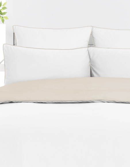 La parure ROSE WOOD BICOLORE en 100% percale de coton de 80 fils/cm² comporte une housse de couette au choix de la dimension et 2 taies d'oreiller carrées 65x65 cm. La housse de couette et la taie d'oreiller sont bi-faces, au style minimaliste elles abordent un passepoil qui les rend uniques.