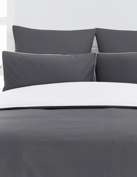 La parure ROSE WOOD BICOLORE en 100% percale de coton de 80 fils/cm² comporte une housse de couette au choix de la dimension et 2 taies d'oreiller carrées 65x65 cm. La housse de couette et la taie d'oreiller sont bi-faces, au style minimaliste elles abordent un passepoil qui les rend uniques.