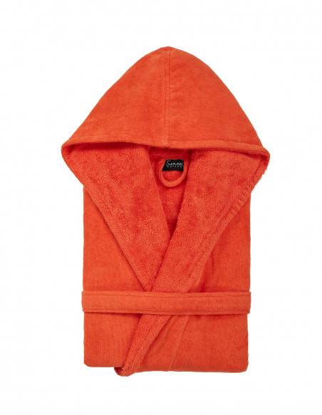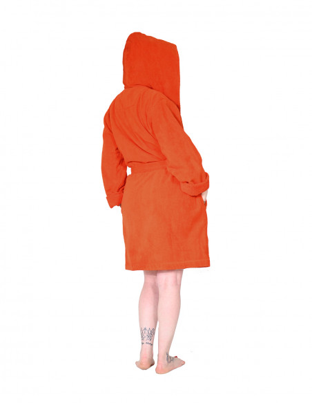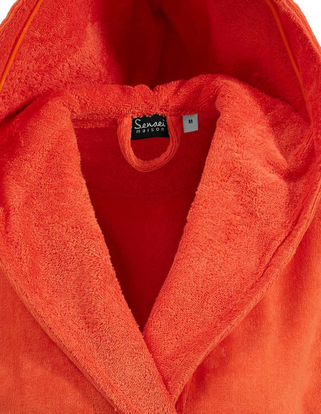 • Le peignoir est doté d’une capuche, de deux poches et d’une ceinture