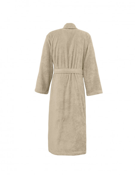 Composition : 100% coton éponge, grammage 400 g/m², tissu bouclette absorbant et moelleux. Le col châle offre élégance et confort, avec une coupe ample qui permet une liberté de mouvement totale.