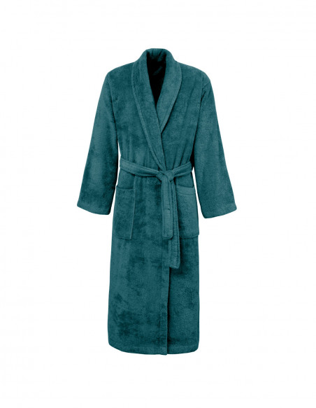 Composition : 100% coton éponge, grammage 400 g/m², tissu bouclette absorbant et moelleux. Le col châle offre élégance et confort, avec une coupe ample qui permet une liberté de mouvement totale.