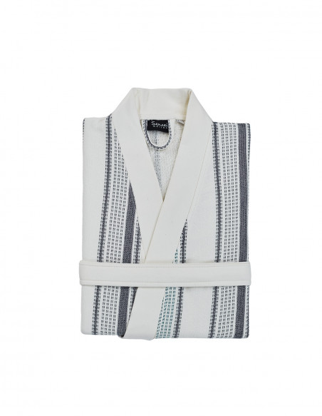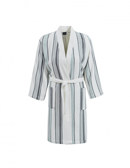 Le peignoir mixte BODRUM et ses douces rayures élégantes est fait pour vous ! Il s'utilise après le bain ou tout simplement en sortant du lit.