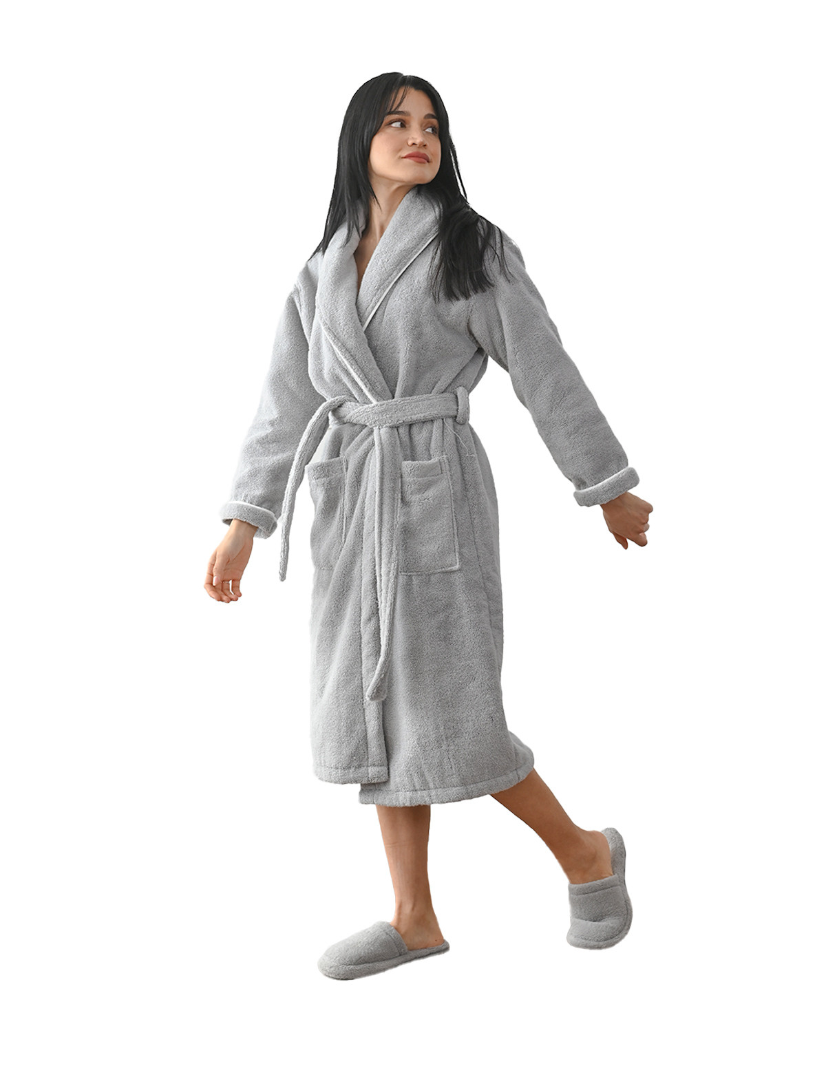 Il est tissé en 450 g/m² en bouclette Zéro twist, ce qui confère à ce peignoir de bain de l'épaisseur et tout le côté "cocoon" dont vous rêvez!
