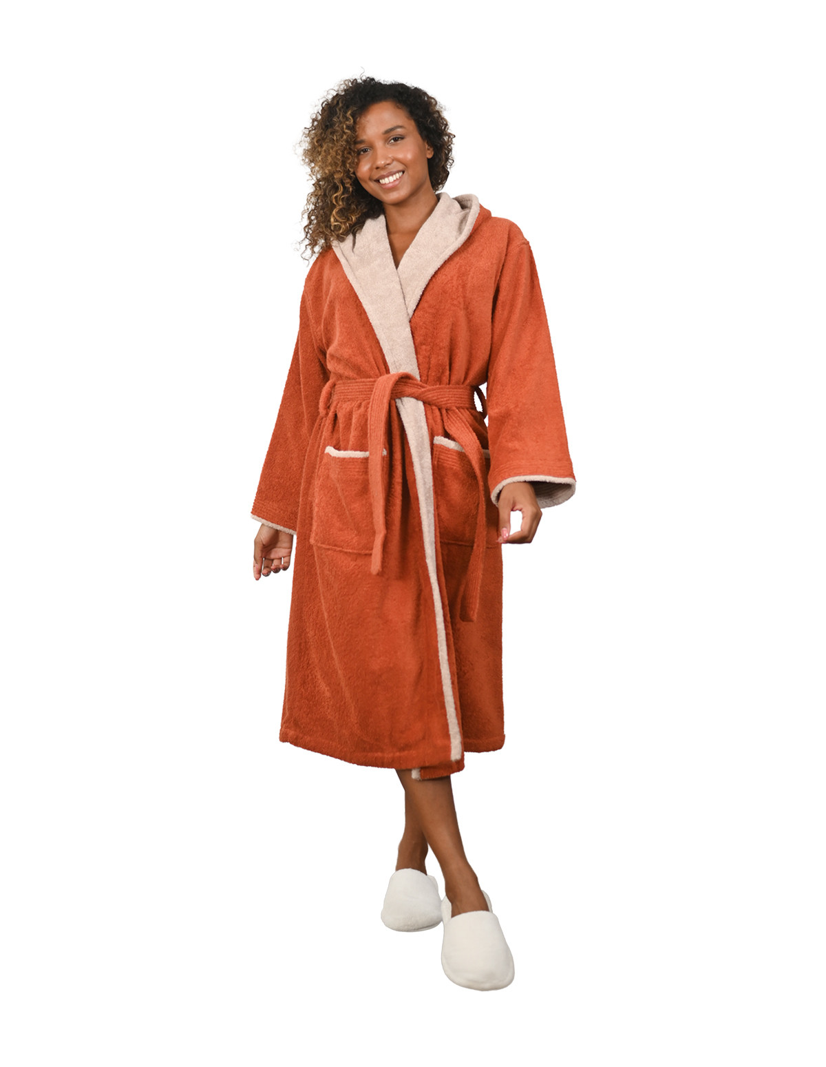 Laissez-vous séduire par le peignoir adulte mixte DOZMARY à capuche bicolore. Pensé pour vous accompagner dans vos instants de détente, il vous enveloppe de douceur et de chaleur dès la sortie de la douche, du bain ou d’une séance spa.
