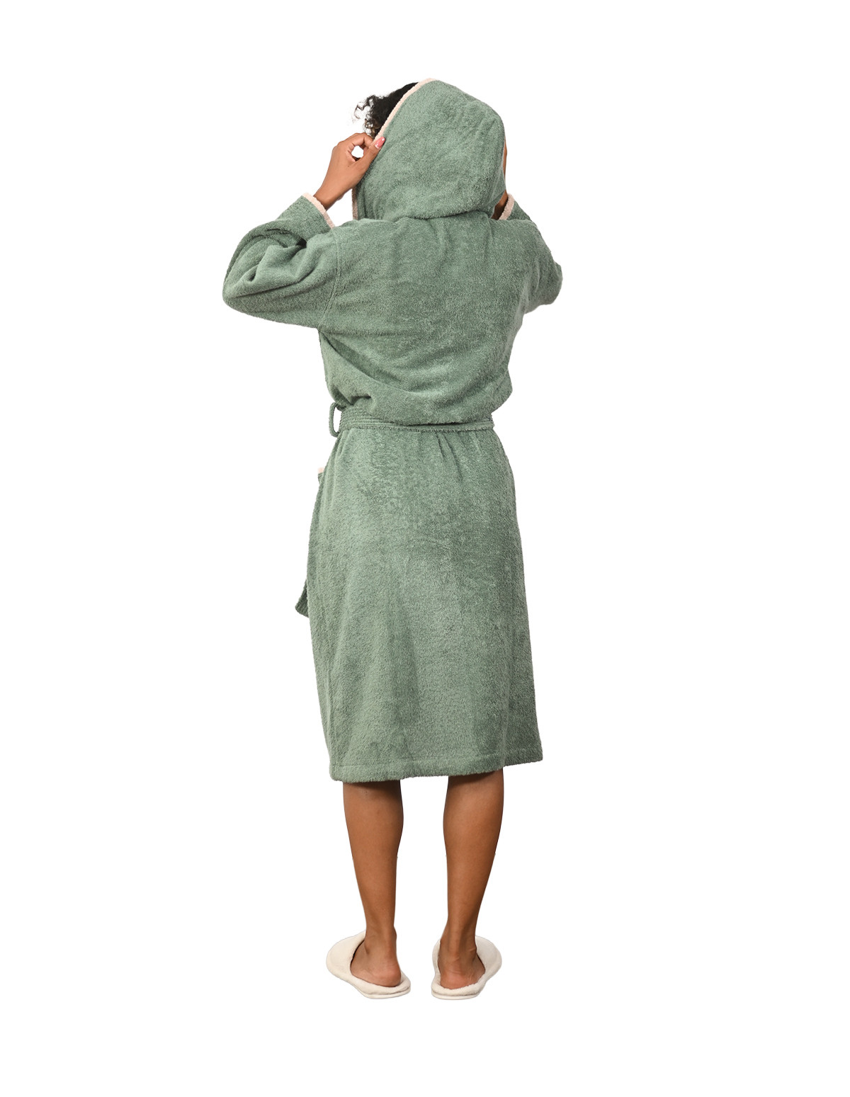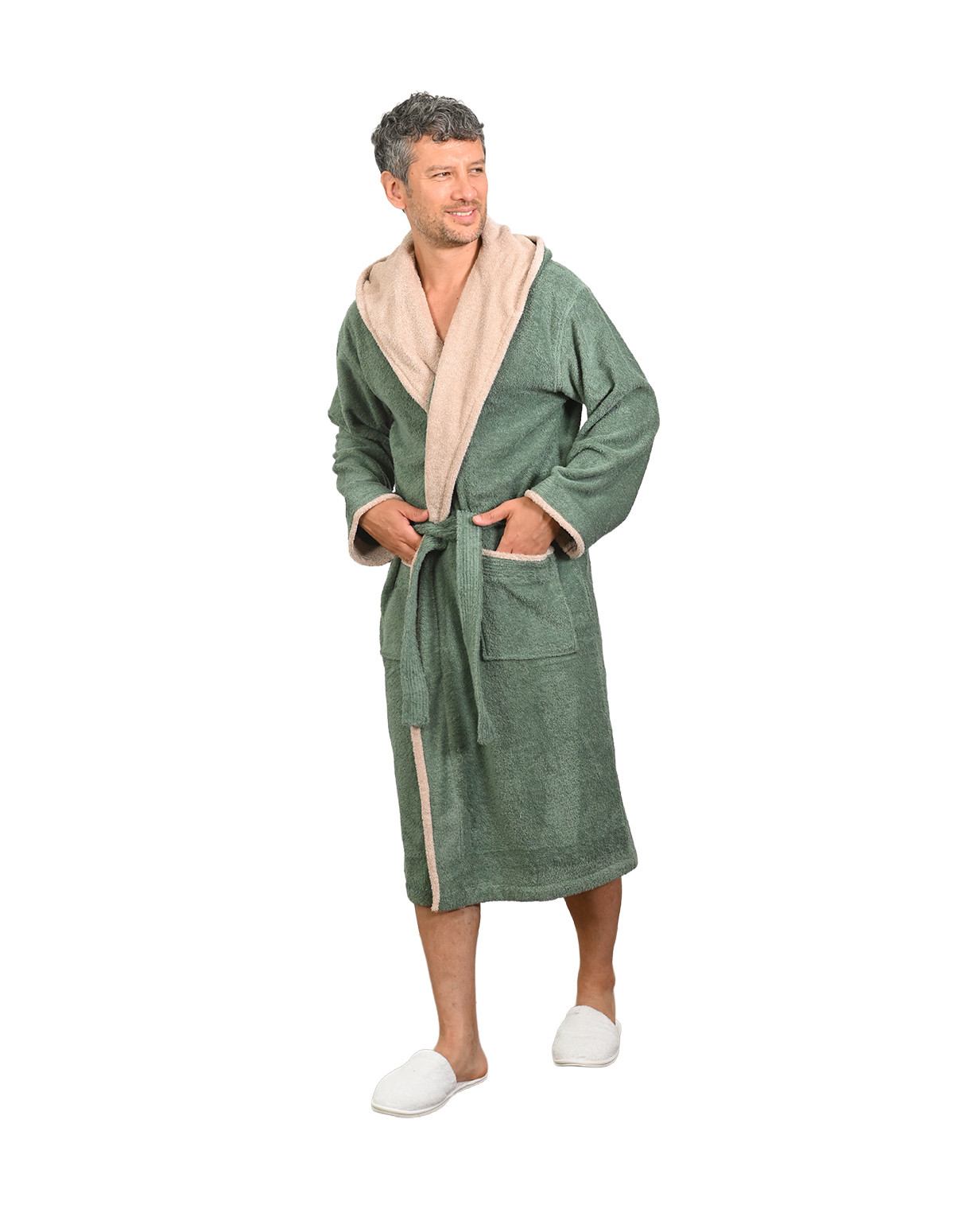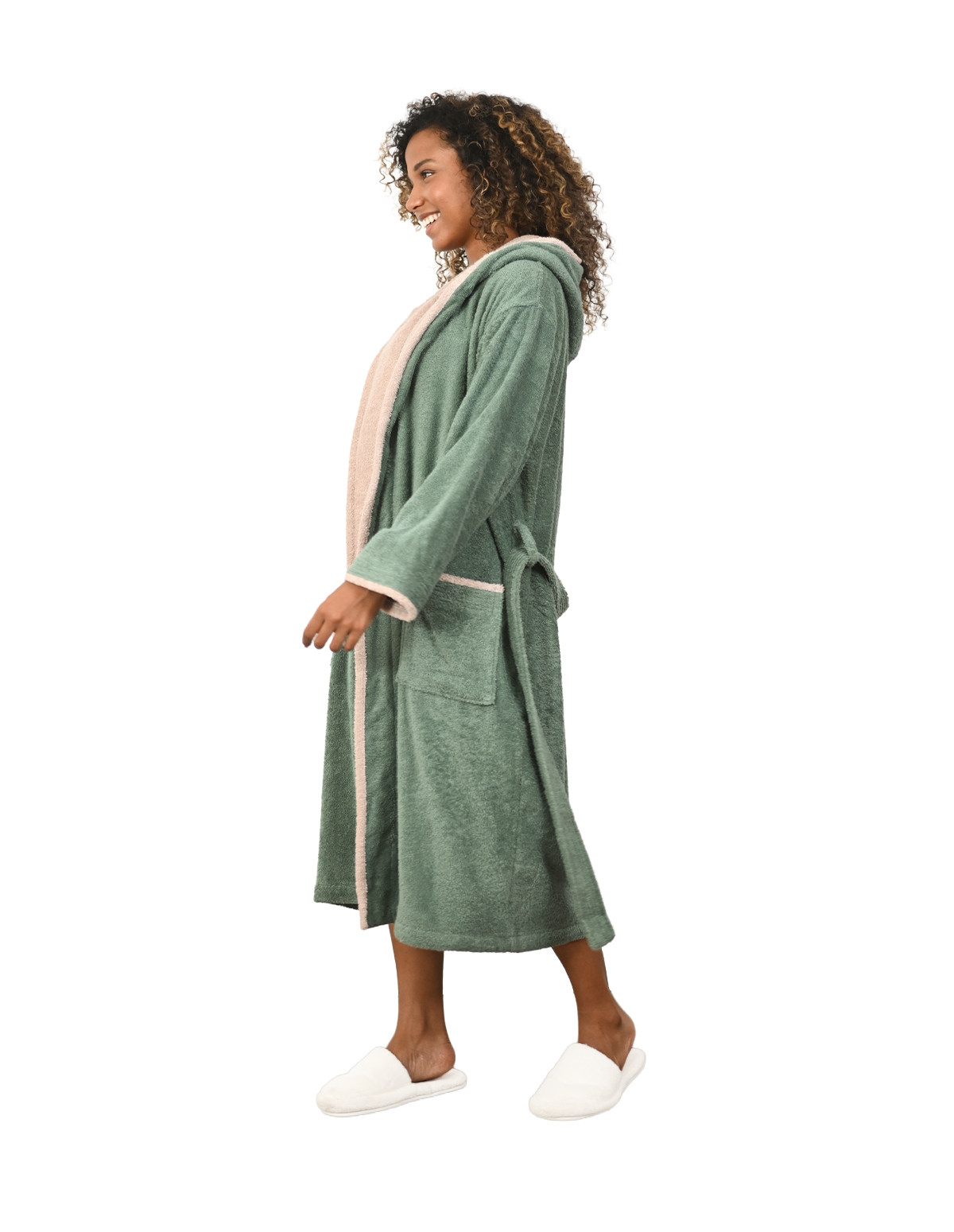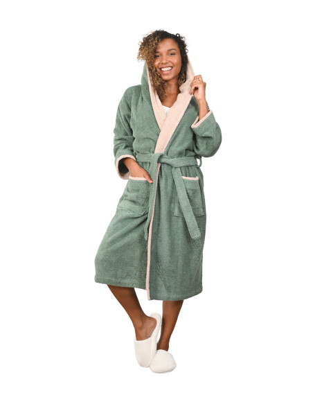 Laissez-vous séduire par le peignoir adulte mixte DOZMARY à capuche bicolore. Pensé pour vous accompagner dans vos instants de détente, il vous enveloppe de douceur et de chaleur dès la sortie de la douche, du bain ou d’une séance spa.