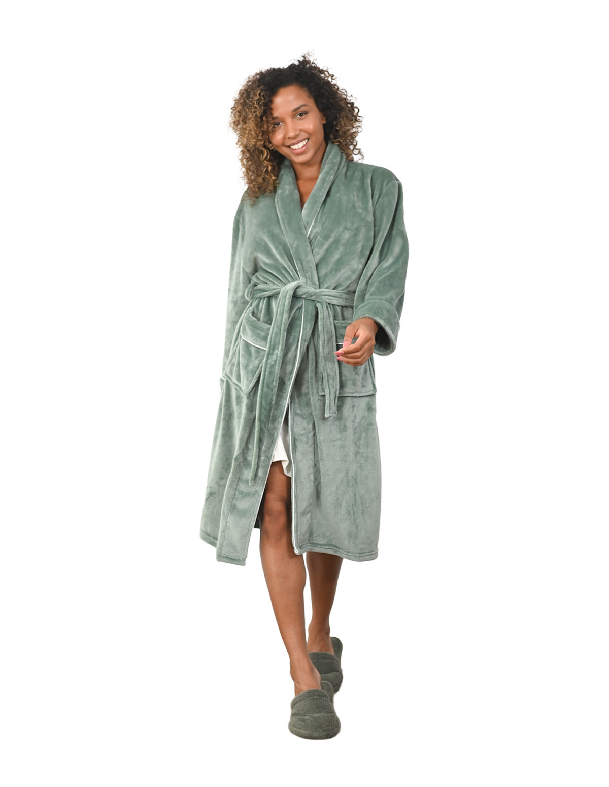 Le peignoir polaire en microfibre KINSLEY vous enveloppe d’une douceur incomparable tout en apportant une touche chic grâce à son passepoil contrasté. Idéal pour les matins frais ou les soirées détente, il associe confort moelleux et allure raffinée.