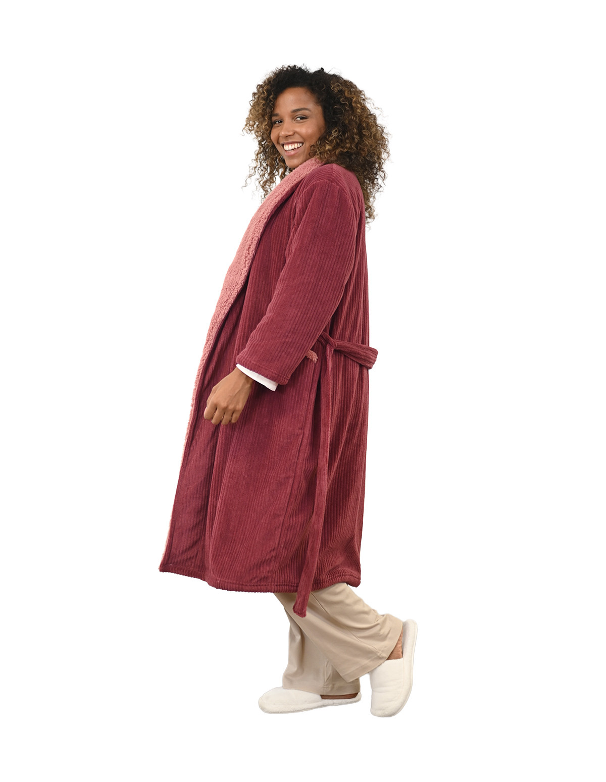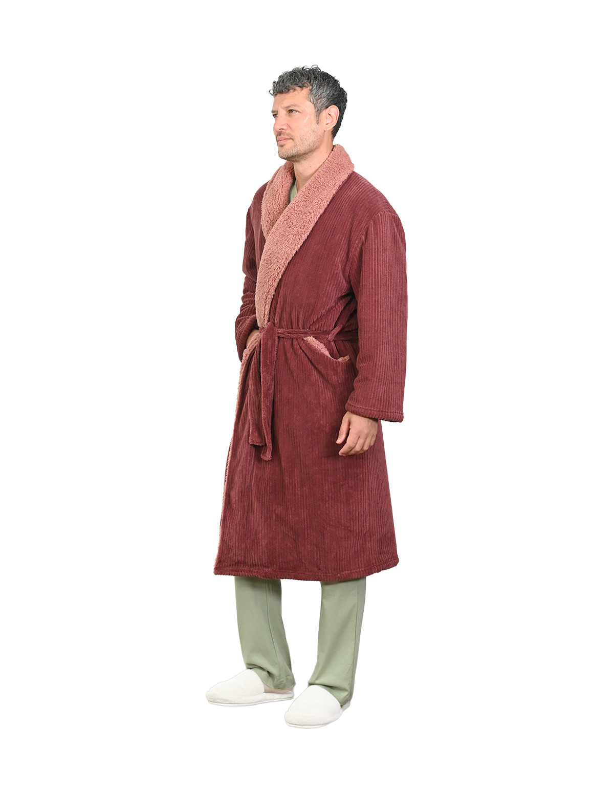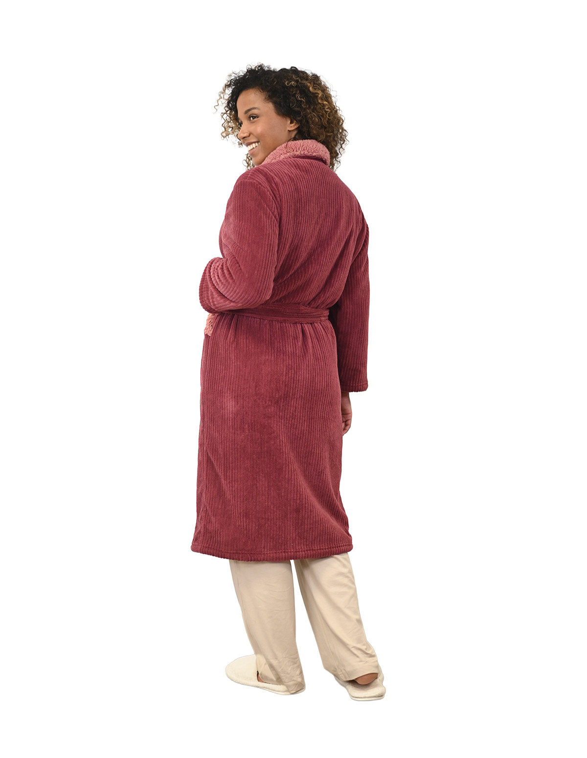 • Le peignoir est doté de deux poches et d’une ceinture