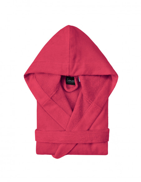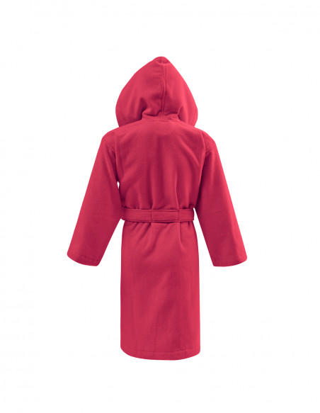 Le peignoir dispose d’une capuche, idéale pour garder la tête au chaud après les sorties de bain, de deux poches sur les côtés et d’une ceinture couse dans le dos à faire venir nouer autour de la taille. Le tissus est en éponge sur la face intérieure pour l'absorption et en velours sur la face extérieure pour plus de légèreté.