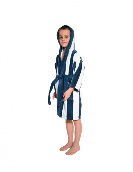 Peignoir enfant à capuche rayé velours ANTIGUA