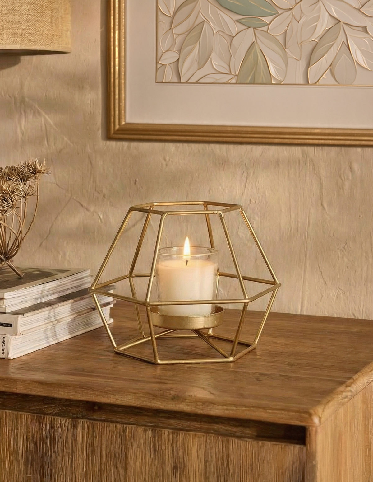 Design et moderne, le photophore KUNDA s’adapte parfaitement à toute décoration. Son armature en métal fait de lui le parfait support pour vos petites bougies !