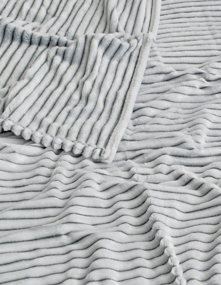 Il est côtelé avec de fines rayures de couleur dans la trame sur fond blanc qui donnent un aspect élégant à ce plaid léger.