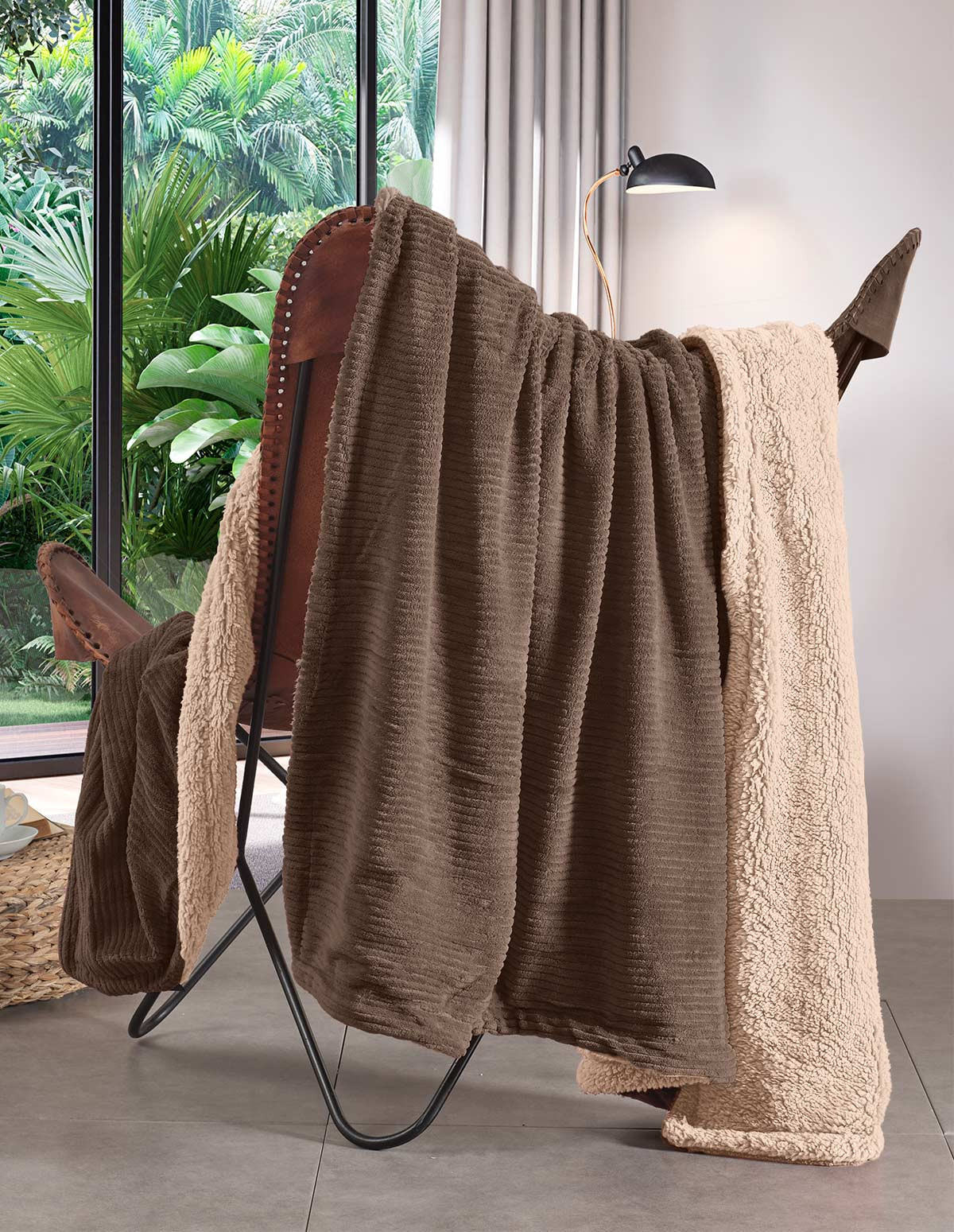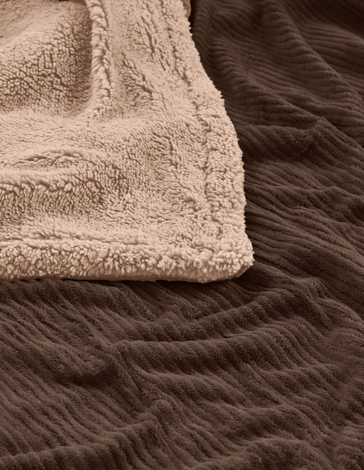 • Élégance texturée : extérieur en fines côtes et intérieur sherpa contrasté qui sublime la déco