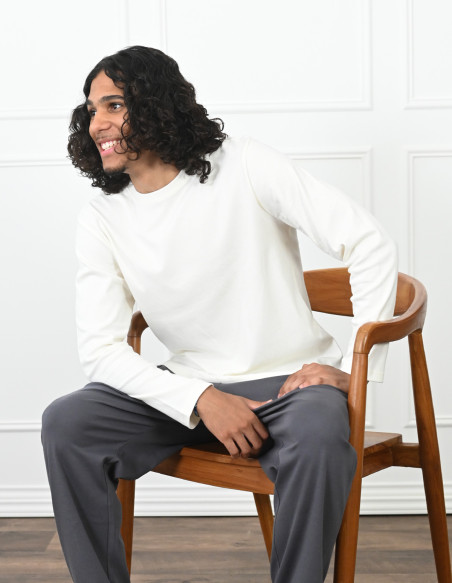 Pensé pour les hommes en quête de douceur et de liberté de mouvement, cet ensemble pyjama (t-shirt manches longues + pantalon) en jersey 100 % coton est un essentiel de la détente. Léger, respirant et agréable à porter, il se compose d’un t-shirt col rond à manches longues et d’un pantalon souple ajustable à la taille avec un cordon. Un basique intemporel à adopter sans hésitation.