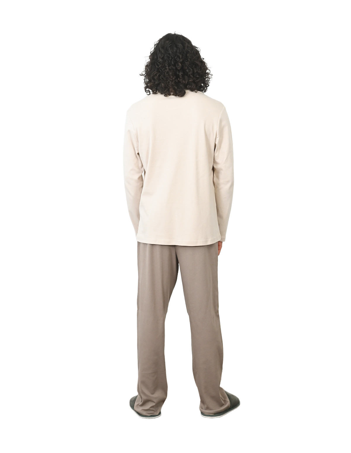 Pensé pour les hommes en quête de douceur et de liberté de mouvement, cet ensemble pyjama (t-shirt manches longues + pantalon) en jersey 100 % coton est un essentiel de la détente. Léger, respirant et agréable à porter, il se compose d’un t-shirt col rond à manches longues et d’un pantalon souple ajustable à la taille avec un cordon. Un basique intemporel à adopter sans hésitation.