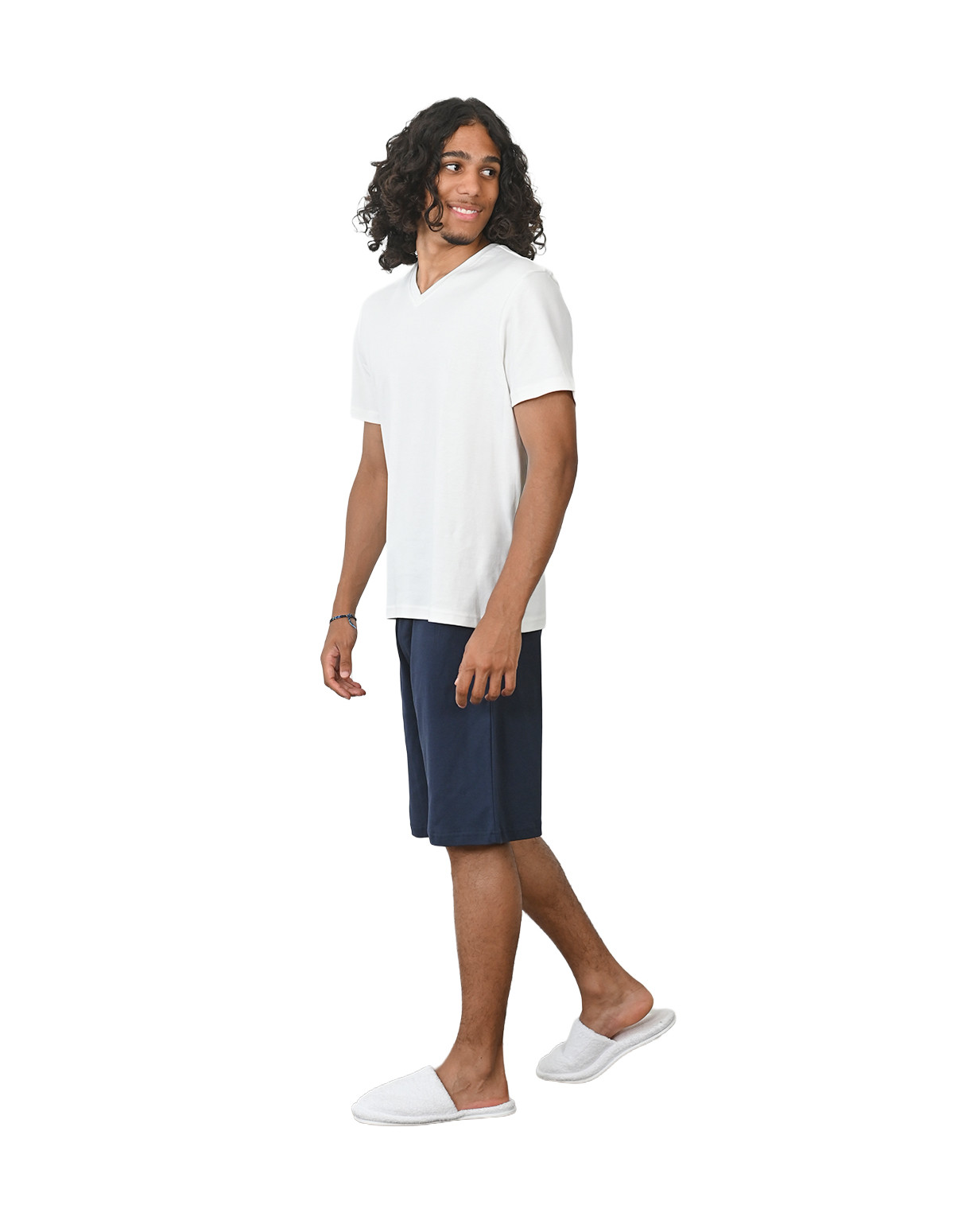 Pensé pour les hommes en quête de douceur et de liberté de mouvement, cet ensemble pyjama (t-shirt + short) en jersey 100 % coton est un essentiel de la détente. Léger, respirant et agréable à porter, il se compose d’un t-shirt col V à manches courtes et d’un short souple ajustable avec un cordon. Un basique intemporel à adopter sans hésitation.