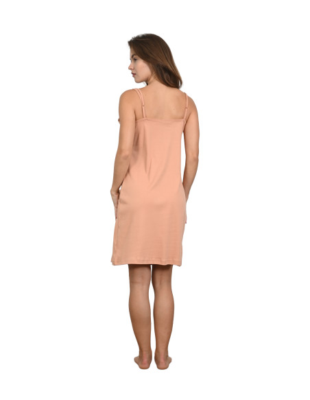 Légère et douce, cette nuisette en jersey 100 % coton est idéale pour des nuits paisibles comme pour les matins tranquilles. Sa coupe fluide et ses fines bretelles lui confèrent une allure féminine et minimaliste, tout en assurant un confort absolu.
