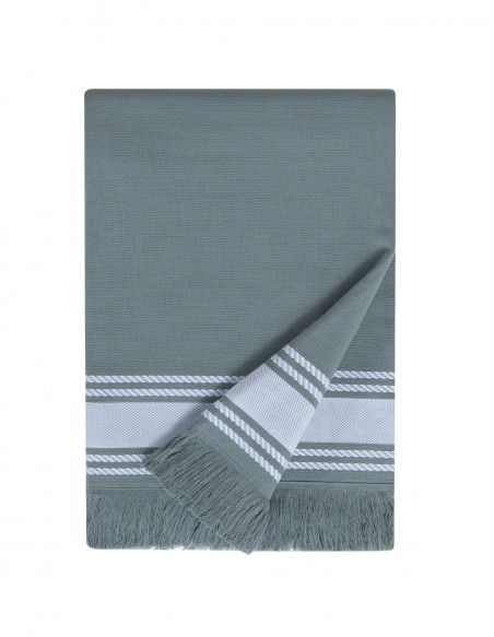 Notre fouta est tissée en une face lisse pour plus de légèreté et une face éponge pour plus d'absorption. Son poids en 340 g/m² lui permet de ne pas prendre trop de place dans votre sac ou valise, et d'être très confortable à utiliser.