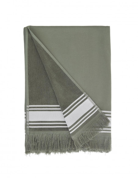 Notre fouta est tissée en une face lisse pour plus de légèreté et une face éponge pour plus d'absorption. Son poids en 340 g/m² lui permet de ne pas prendre trop de place dans votre sac ou valise, et d'être très confortable à utiliser.