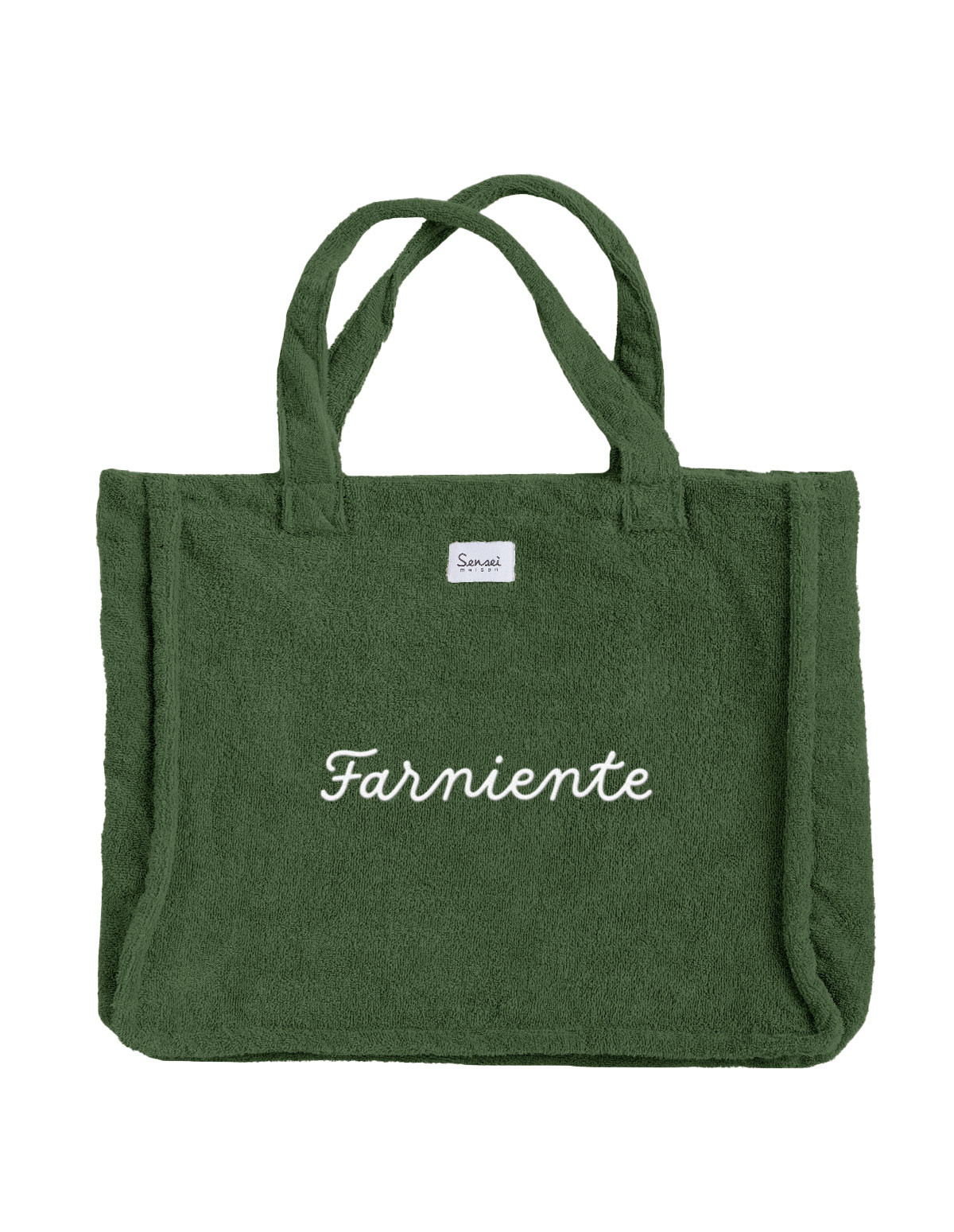 Ornés de messages ensoleillés comme "Farniente", "Dolce Vita" et "Pieds dans l'eau", ils ajoutent une touche de fraîcheur à vos journées au bord de l’eau. Spacieux et résistants, ils apporteront une note de légèreté et de style à votre look de vacances.
