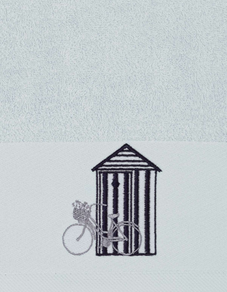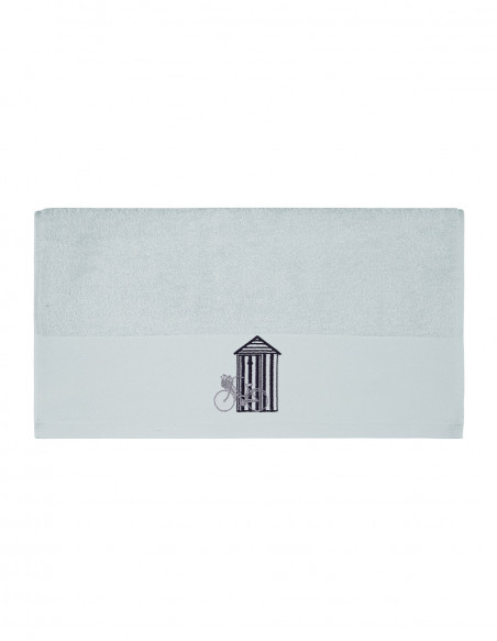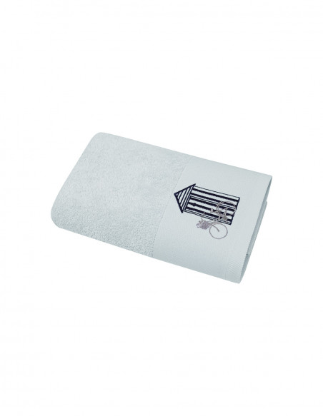 Enveloppez vous dans la douceur avec notre serviette de toilette haut de gamme BORD DE MER, brodée d'une charmante cabine de mer pour une touche d'élégance façon … bord de mer!