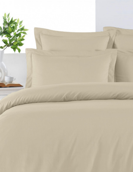 Découvrez la qualité et le toucher fluide et léger des taies d’oreillers VERSALUXE double-face unie/rayées 100% satin de coton peigné 120 fils/cm².