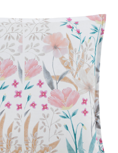Apportez une touche de fraîcheur printanière à votre chambre avec notre collection ANGELICA en percale de coton, ornée de motifs floraux délicats sur la face et un semis de feuilles sur l'envers. Transformez votre espace en un véritable jardin poétique. Ce lot comporte 2 taies d'oreiller.
