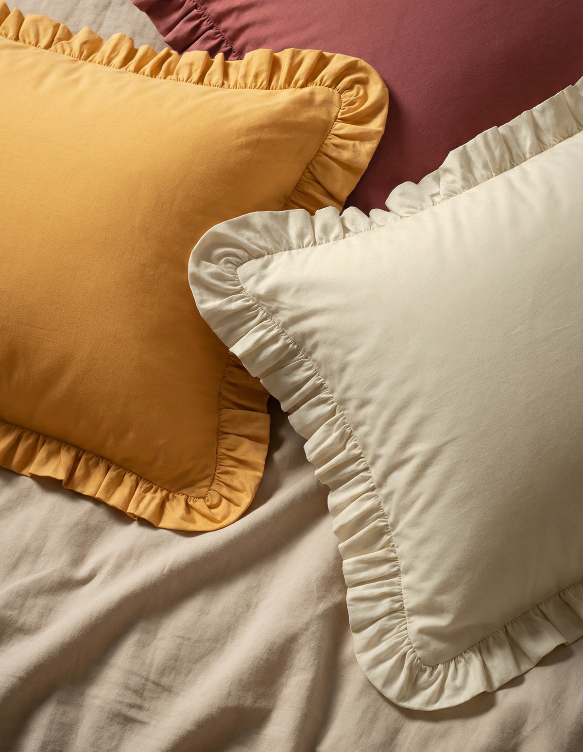 Apportez une touche de douceur lumineuse à votre chambre avec nos taies d’oreiller LILY unies ornées d’un délicat volant. Leur teinte chaleureuse et solaire insuffle instantanément une atmosphère cosy et raffinée à votre espace nuit, tandis que la finition volantée apporte élégance et subtil relief.