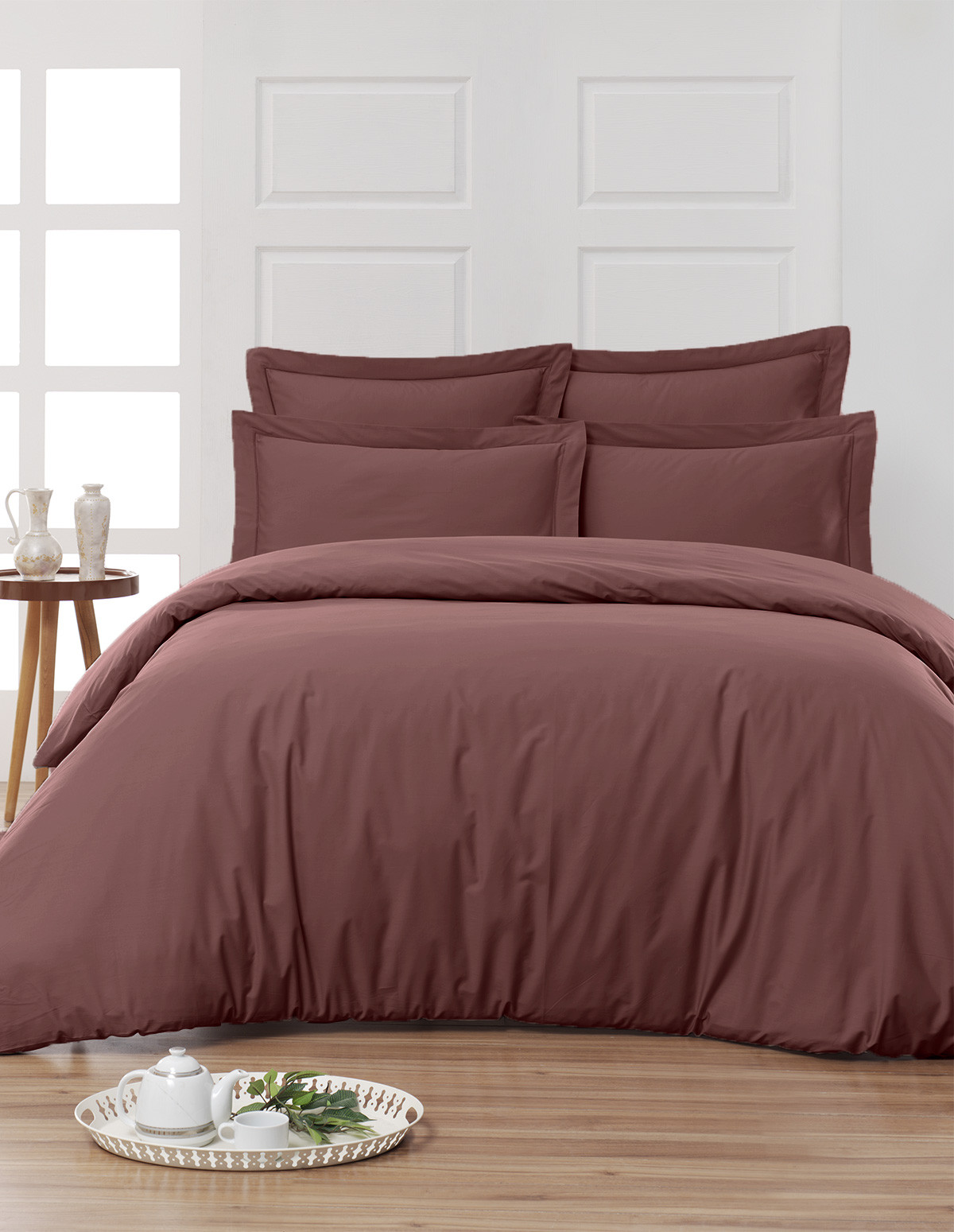 Composition : 100% coton percale, 80 fils/cm², traitement Easy Care intégré. Le tissage serré garantit une résistance et une douceur durables, qui s'amélioreront à chaque lavage.