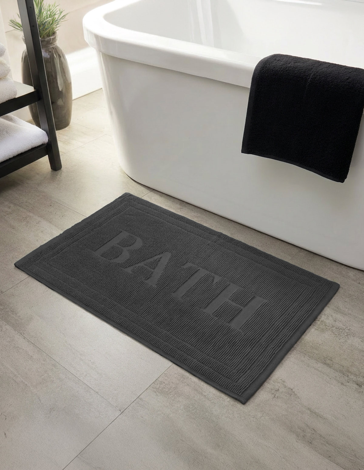 Le tapis BATH marquera bien l'endroit ou vous vous trouvez! Avec son élégant tissage jacquard et structure en 1050 g/m², il sera très confortable à utiliser dans votre salle de bain.