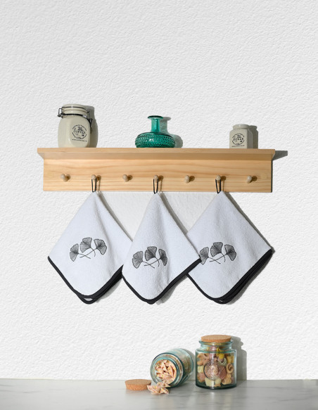 Oublions les essuie-tout et passons au torchon grâce au torchon éponge GINKGO. Plus résistants et bien plus sécurisant qu’un essuie-tout ordinaire il est brodé de quelques ginkgos et le coloris de son liseré s’accorde avec la boucle, qui lui permet d’être suspendu où bon vous semble.