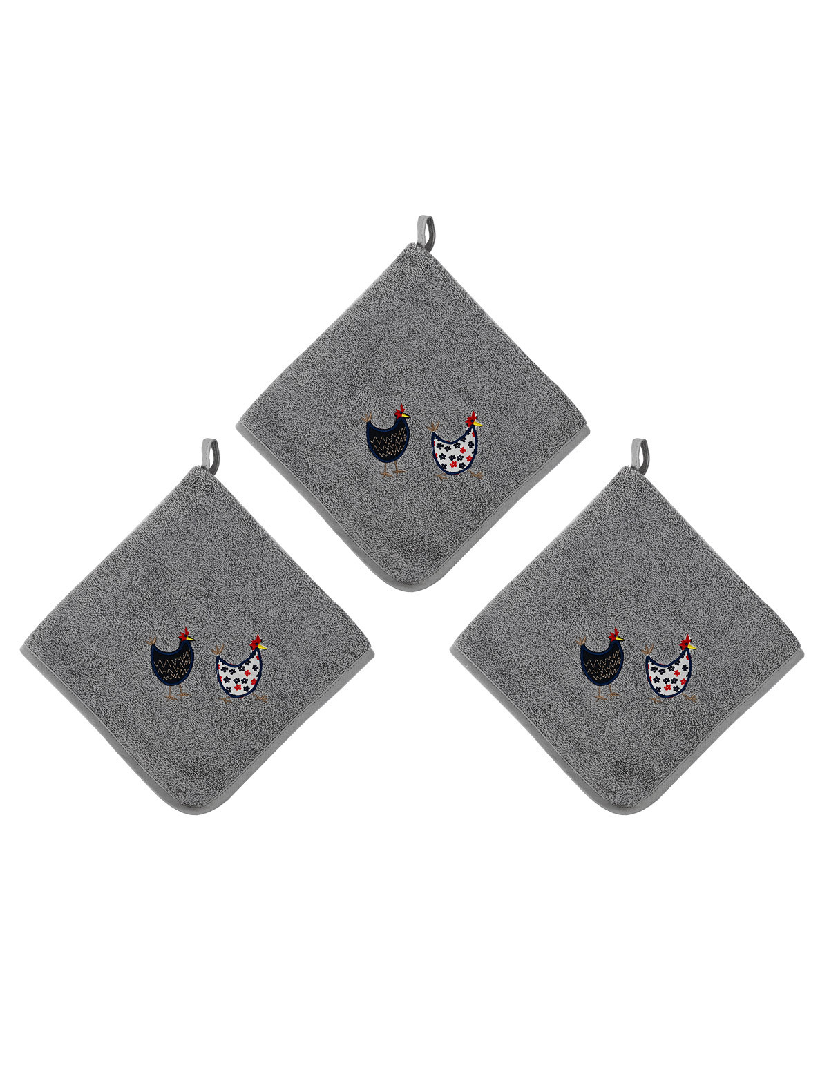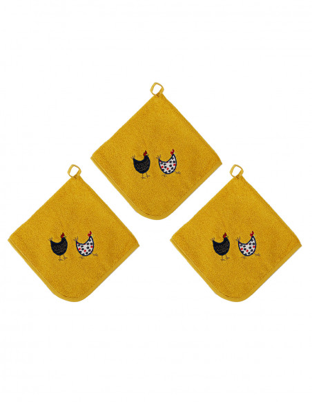 Lot de 3 torchons carrés POULES