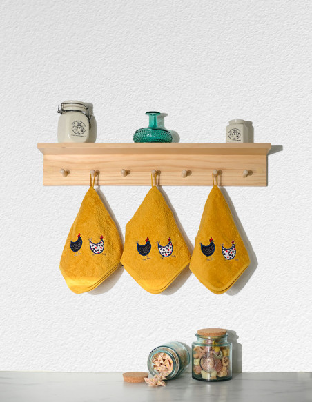 Qu’ils soient blancs en Safran, Ficelle ou Gris Perle, ces torchons amèneront du fun à votre pièce préférée ! De par leur taille, 50x50cm, ils prendront peu de place et apporteront de la vivacité et propreté à votre cuisine. Les 2 poules brodées qui les accompagnent ne pourront que vous inspirez pour vos plats !
