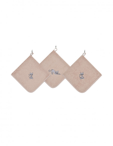 Lot de 3 torchons carrés en éponge coton YOGI CAT