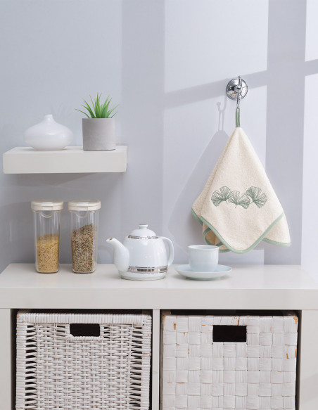 La douceur du printemps restera dans votre cuisine avec ce torchon carré en éponge brodé NOA GINKGO. En éponge, pour mieux absorber!