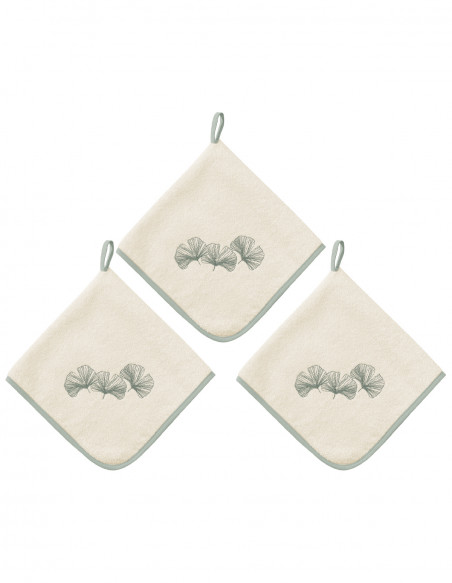 Lot de 3 torchons carrés en éponge coton NOA GINKGO