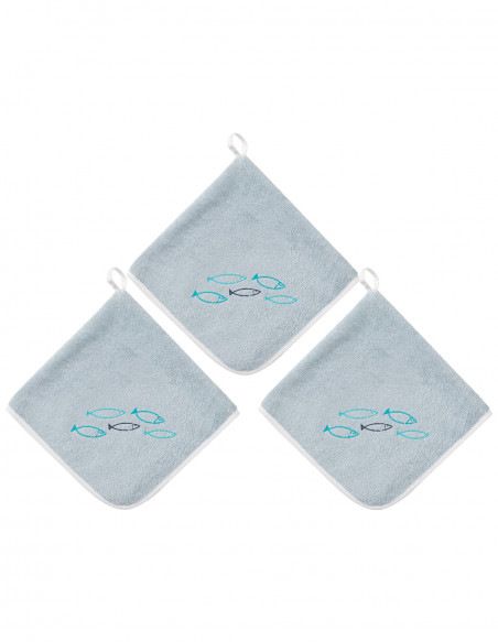 Lot de 3 torchons carrés en éponge coton OCEAN FISH