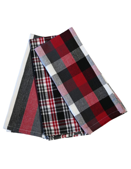 Profitez de ce lot de 12 torchons de cuisine assortis GLASGOW. En 100% coton pour une parfaite absorption, ce lot est composé de 4x1 torchon à rayures, 4x1 en carreaux et 4x1 en motif écossais, avec un choix de coloris.